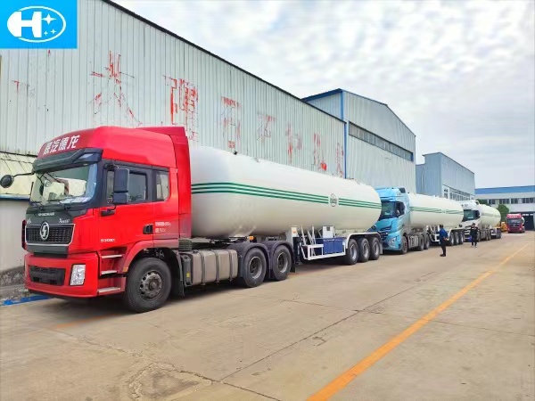 五臺57m3液化氣出口半掛車順利裝車發貨,感謝老總對我們公司的支持與信任!祝司機師傅一路順風,祝老總生意興隆、財源廣進!